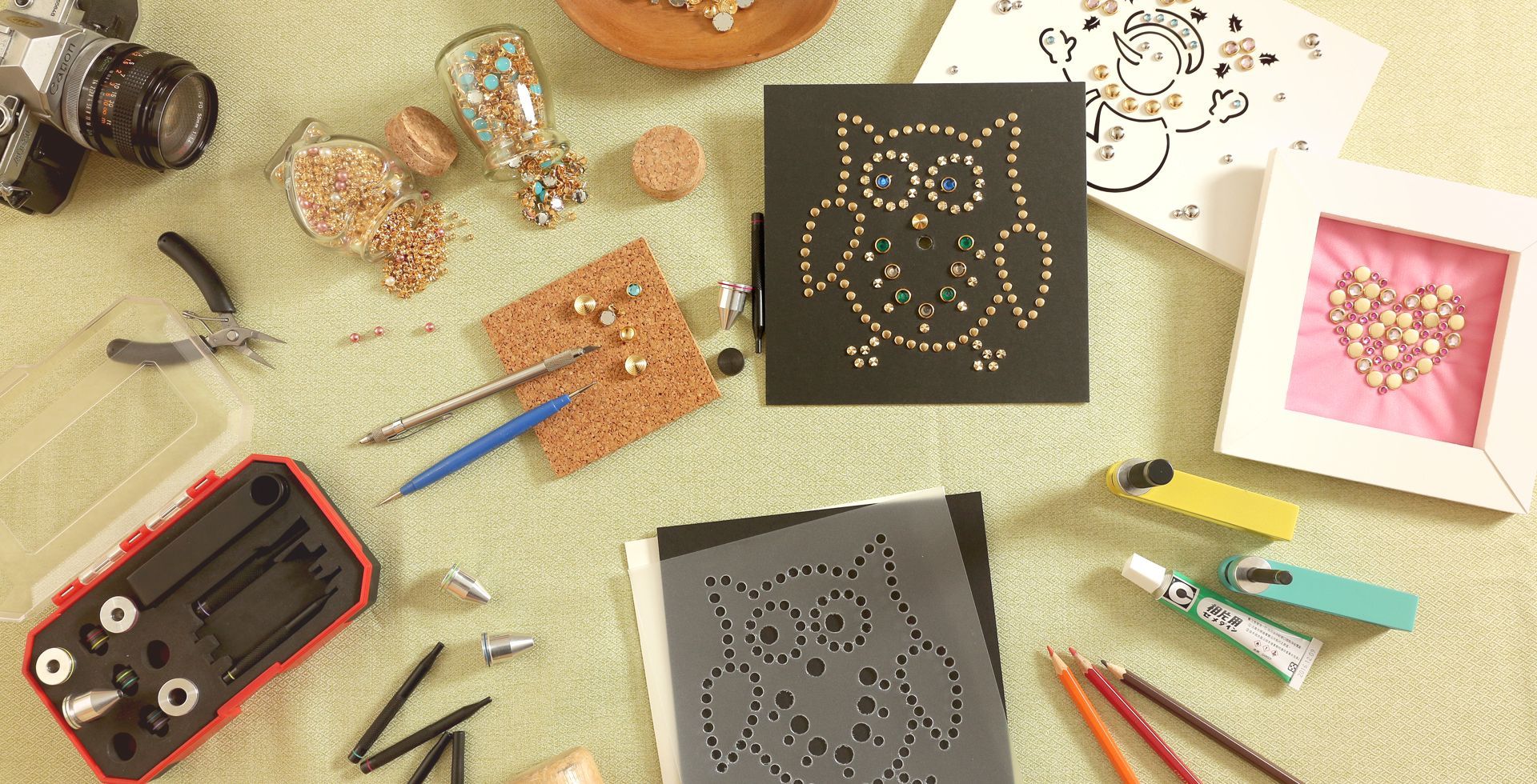 讓使用者可於多種材料釘上各種尺寸樣式的爪珠鑽飾,操作簡單又迅速。
